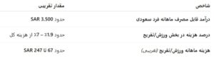 در مقابل، برای مثال در عربستان سعودی، میانگین درآمد قابل خرج ماهانه هر شهروند حدود ۳٬۵۰۰ ریال سعودی است که سهم ورزش و تفریح از آن حدود ۱٫۹٪ تا ۷٪ برآورد میشود.